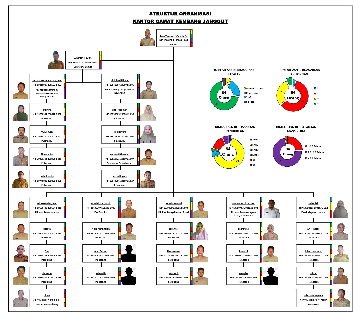 Terdiri dari 11 desa definitif dan 1 desa persiapan, dengan ibukota kecamatan di Desa Kembang Janggut. Jarak desa terjauh, Long Beleh Modang, mencapai 80 km dari pusat kecamatan. Akses ke seluruh wilayah dapat ditempuh melalui jalan darat maupun sungai.
